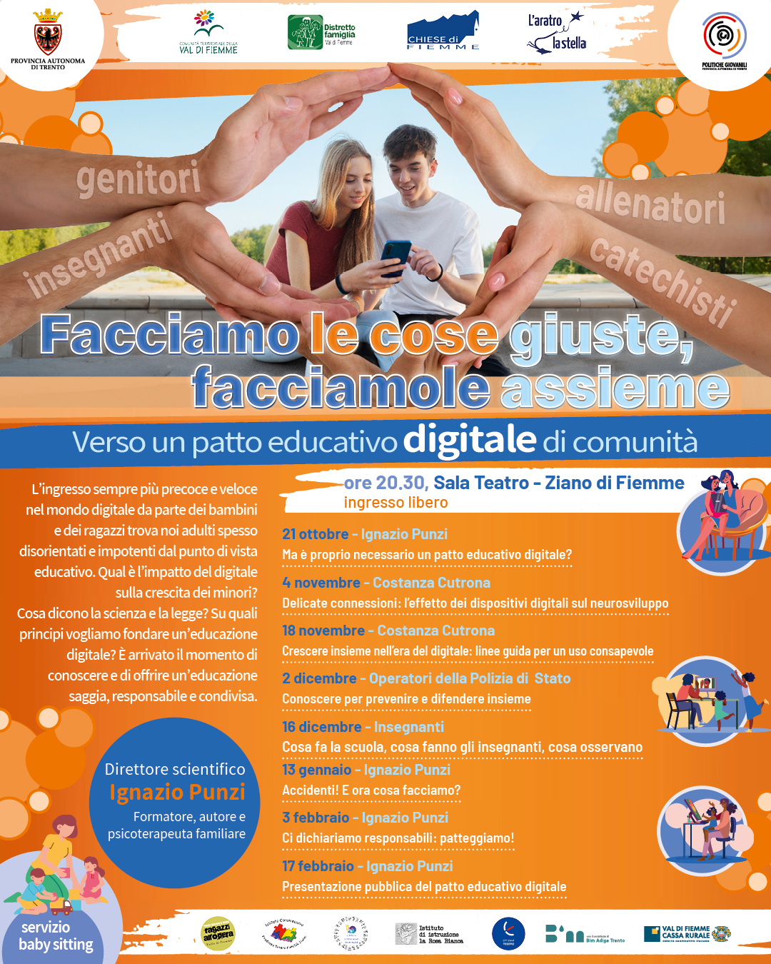 Descrizione Facciamo le cose giuste, facciamole assieme.Verso un patto educativo digitale di comunitàSala Teatro a Ziano di Fiemme.
